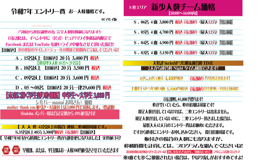平日は5人以上です 平日はエントリー費平日割引対応しま