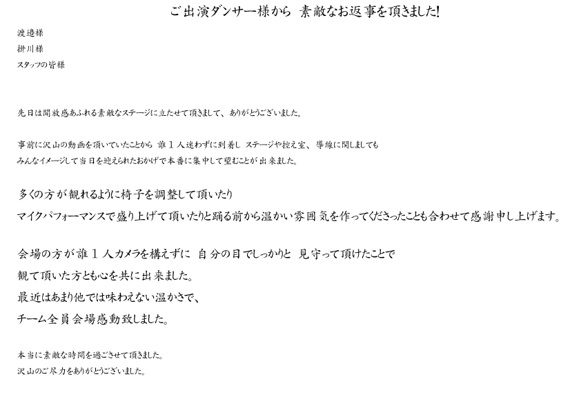 私たちのステージを見にきてくださった皆さま、本当にありがとうございました。